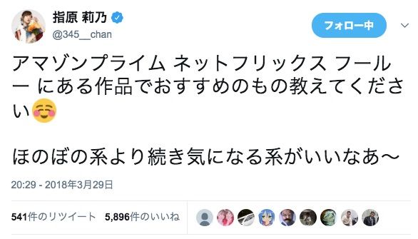 — 指原 莉乃 (@345__chan) 2018年3月29日
