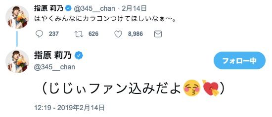 — 指原 莉乃 (@345__chan) 2019年2月14日