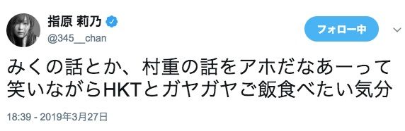 — 指原 莉乃 (@345__chan) 2019年3月27日
